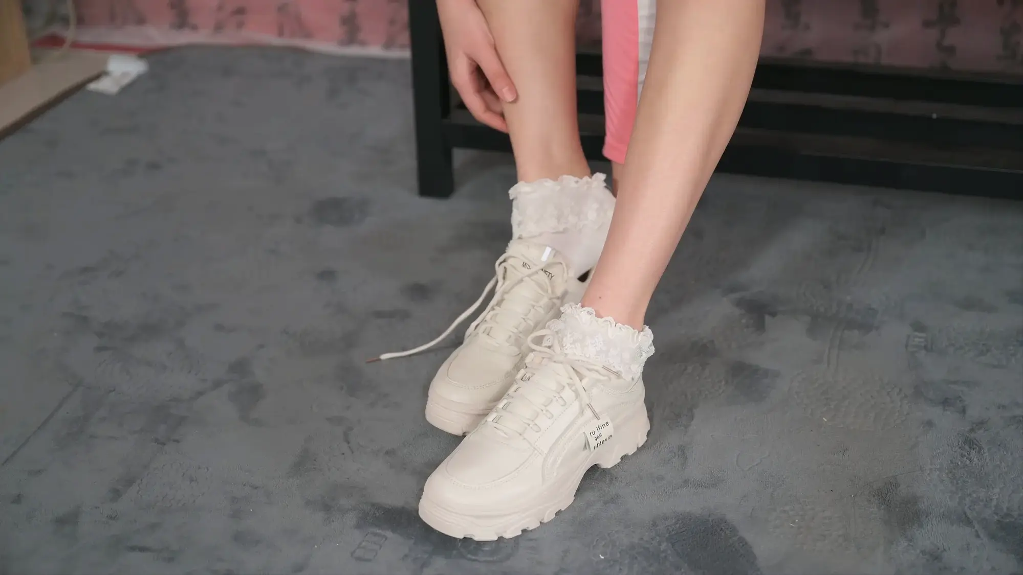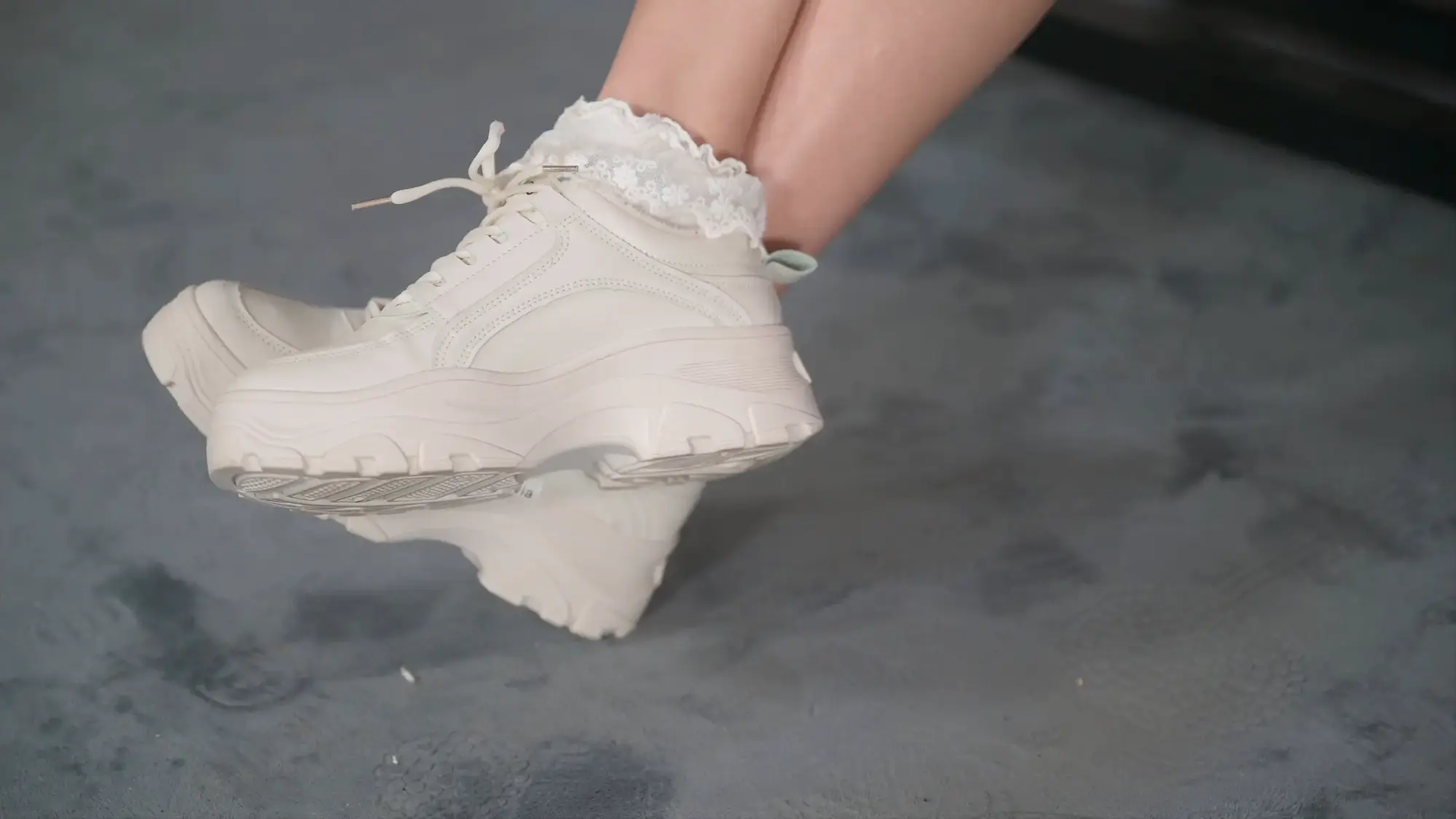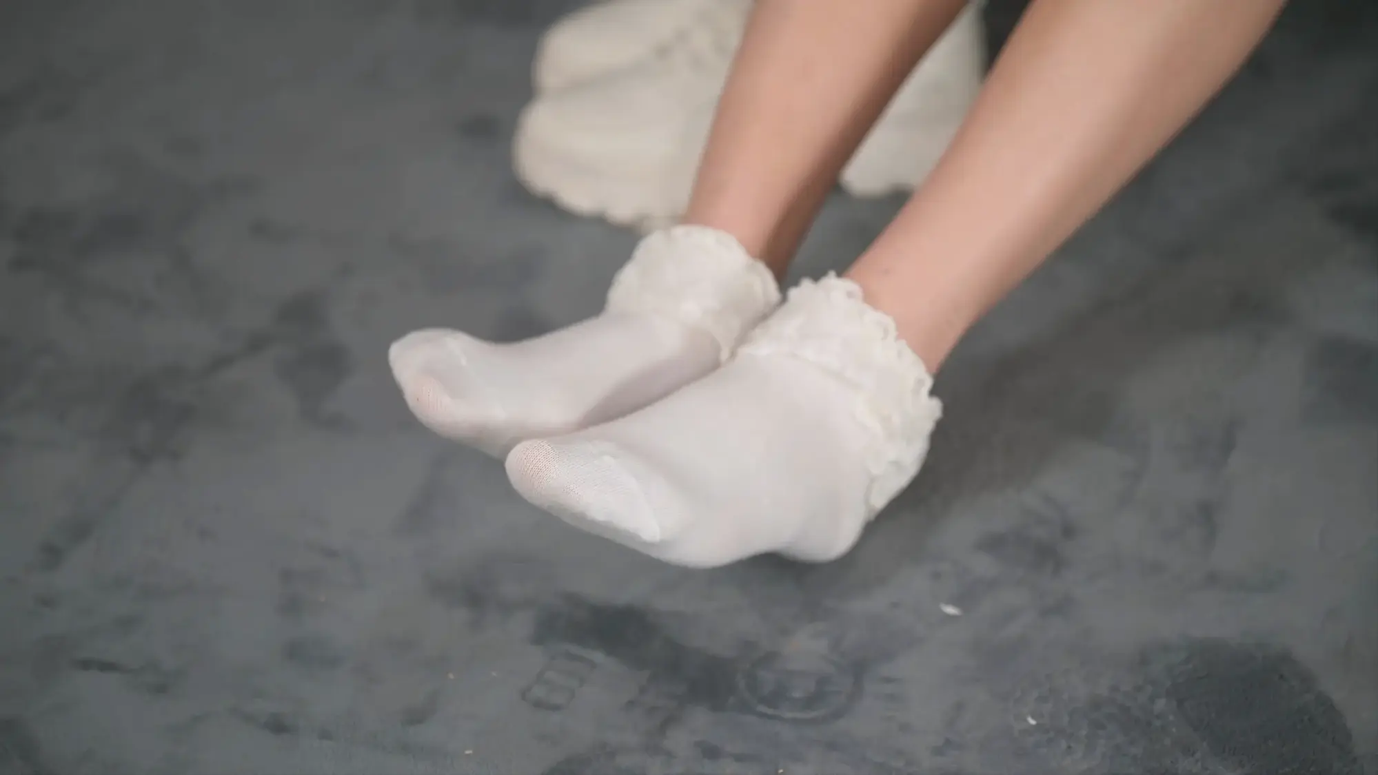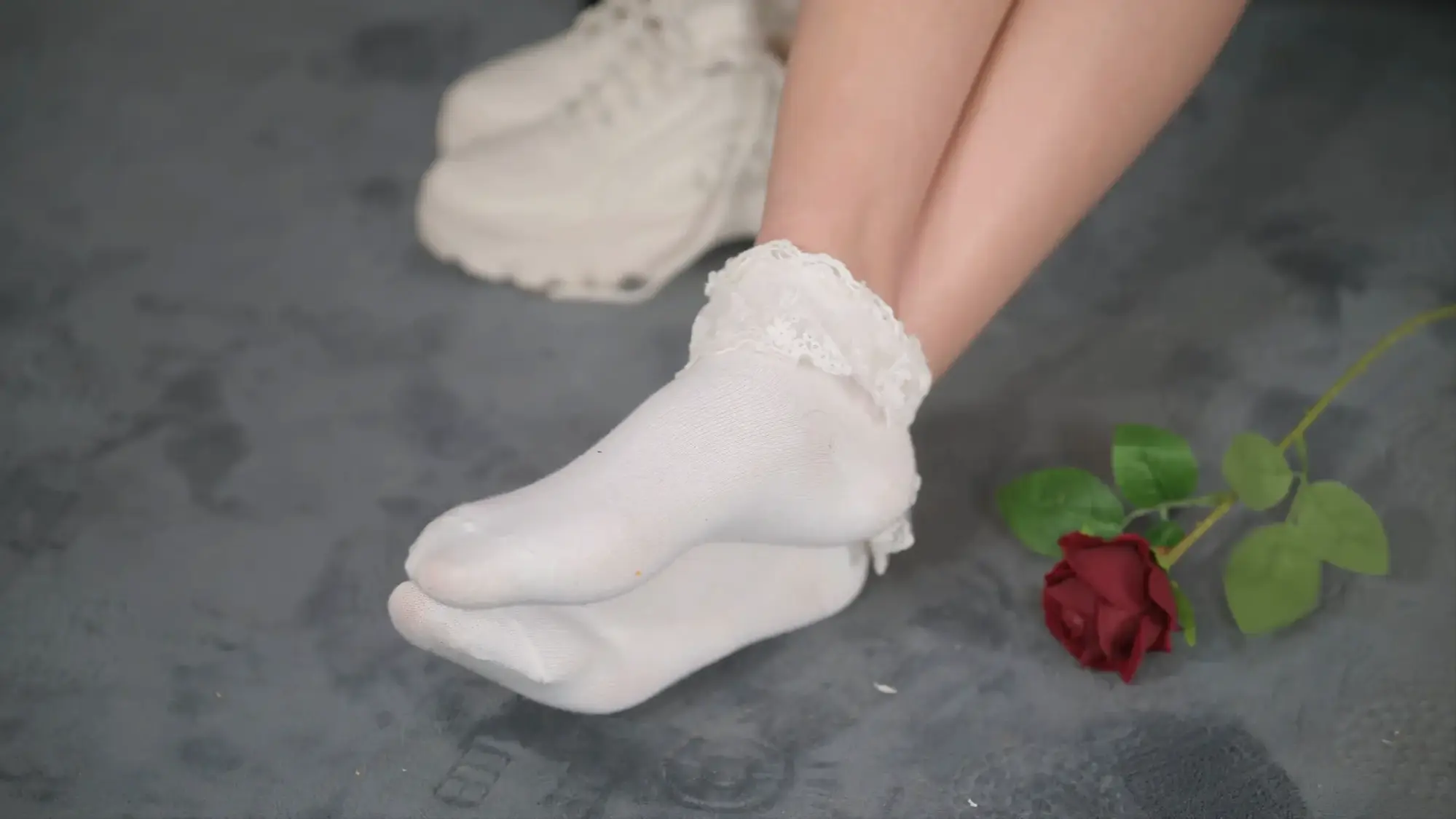 【撒琅制造】【美腿玉足系列】高挑足球短裙玫瑰配花边棉袜运动鞋加裸足--(无捆绑)