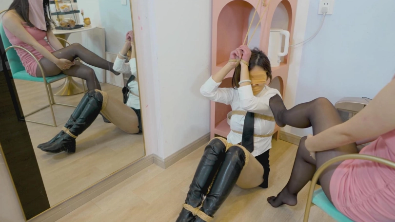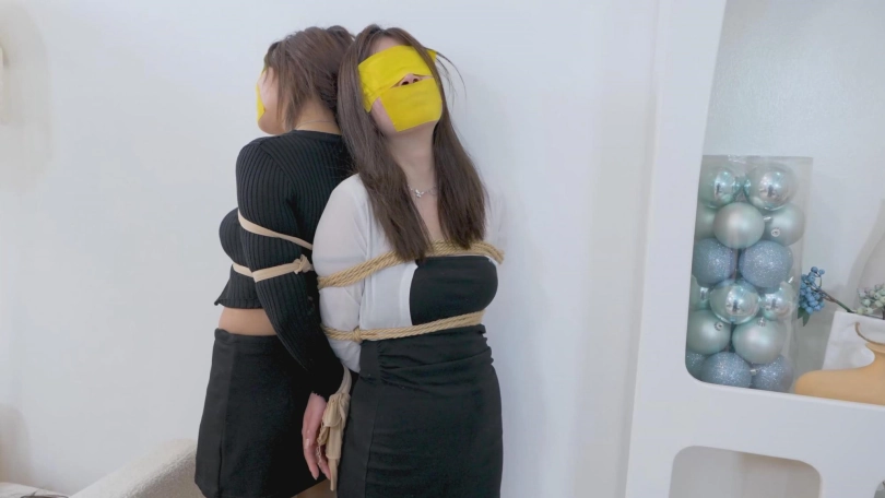 等小美再次醒来,已经被小柔绑了起来,浑身缠满了保鲜膜,然小柔用烤红薯放在小美的鼻子上挑逗她,小柔饿了想吃,可是嘴被封着,没法咬,还是被小柔吃了。吃完饭后,小柔带也出去了,还说了句,我去找有钱人了。留下小柔一个人呜呜呜挣扎半天。不知道过来多长时间,小柔回来了,也又开始虐小美,用丝袜脚踩踏,闻脚,挠脚心之类的。玩够了,就解开小美的手部束缚,就去睡了。日子就这样一天一天的过去了,可是忽然有一天,女人们在第二天醒来后发现,两都被人绑起来了,这是怎么回事呢?