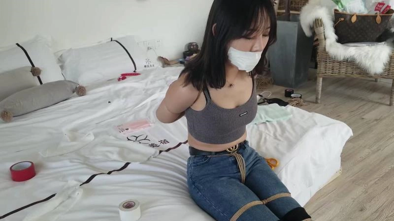 【绳师奥特曼】空姐梦怡牛仔裤捆绑各种严密堵嘴(上) 丝袜堵嘴、原味白袜+口球封堵、毛巾+口球封堵