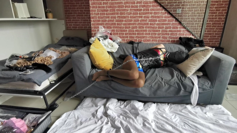 【JS】小冷《囚禁女超人》皮革束缚 丝袜堵嘴 单手套 玩弄丝足