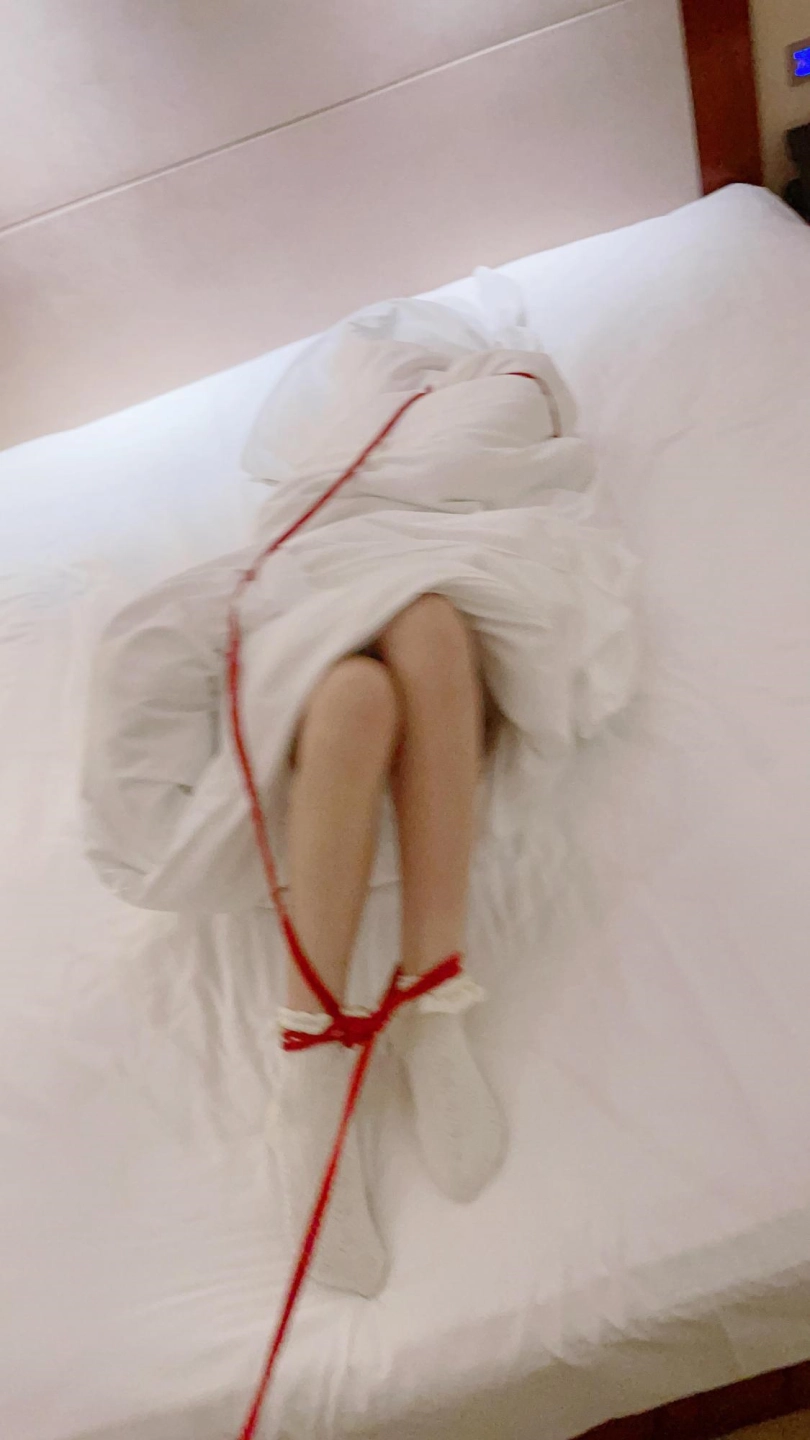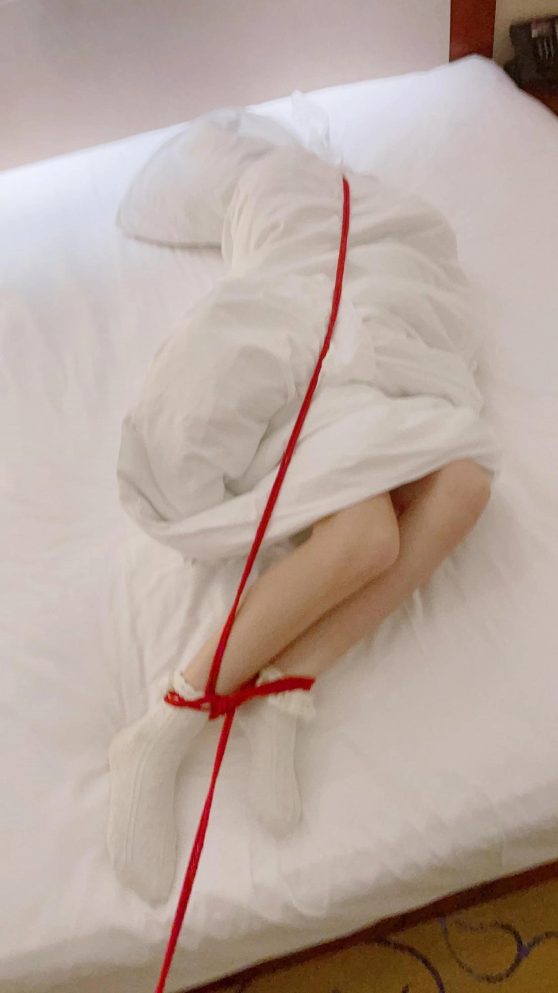 场景3:lolita肉丝棉被包裹挣扎,同样用绳子缠绕,双手隔着棉被闷捂限制呼吸。