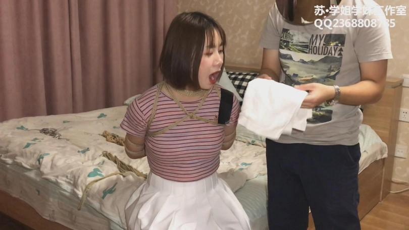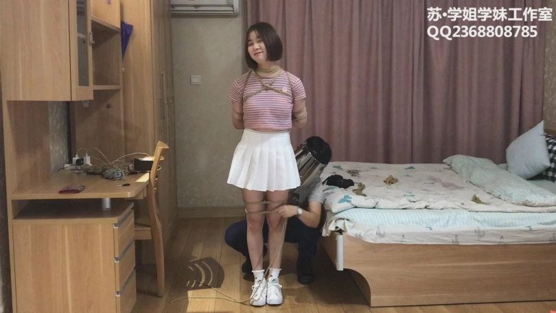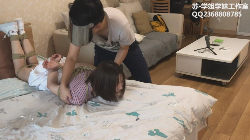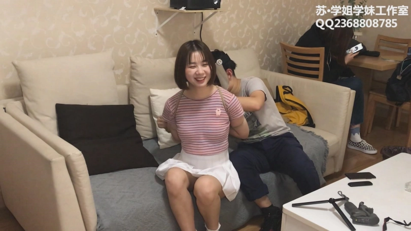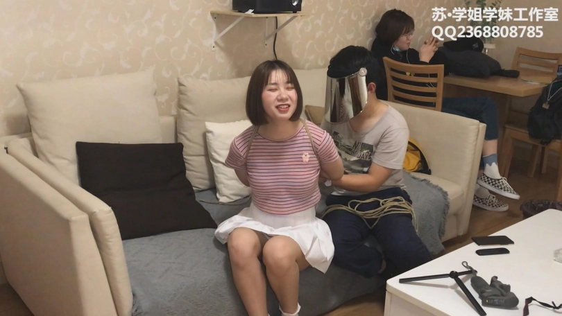 【学姐学妹】Cindy试镜 下——阳光妹子Cindy边被绑边谈体验感受,小白鞋白棉袜超短裙,还有摄后访谈哦