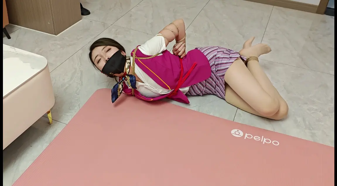高挑肉丝空姐被上门讨债人员强行捆绑堵嘴,全力挣扎也无法挣脱,不得不哭泣求饶。趁看守不注意,找到手机,无奈手脚被绑无法求救,最终被吊起来玩弄
