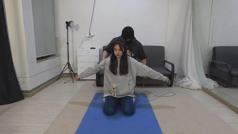 最近很喜欢这个大高个子美女模特阿荣,一连拍了好几部。这次的服装是卫衣,紧身牛仔裤,运动鞋。一身休闲运动装,清纯的样子还是很招人喜欢的。喜欢反铐,反扭,捆绑等的可以看看。