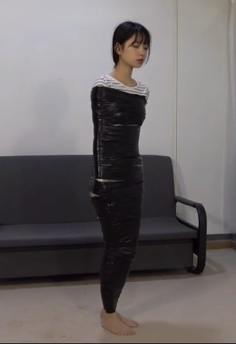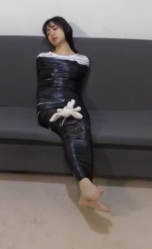 这一次她又感觉到自己的身体不受控制了,而这一次捆绑她的不是绳索,而是保鲜膜,小A的全身都被保鲜膜缠了个结实