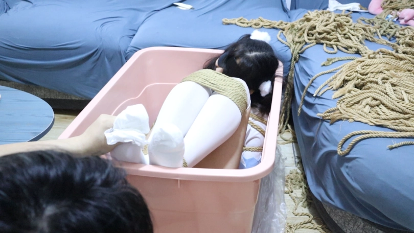 但是嘴巴又被堵住,只能呜呜呜呜呜呜的喊叫,被绑的这么紧,整个娇弱身体又扔到了箱子里,连活动一下都很困难,