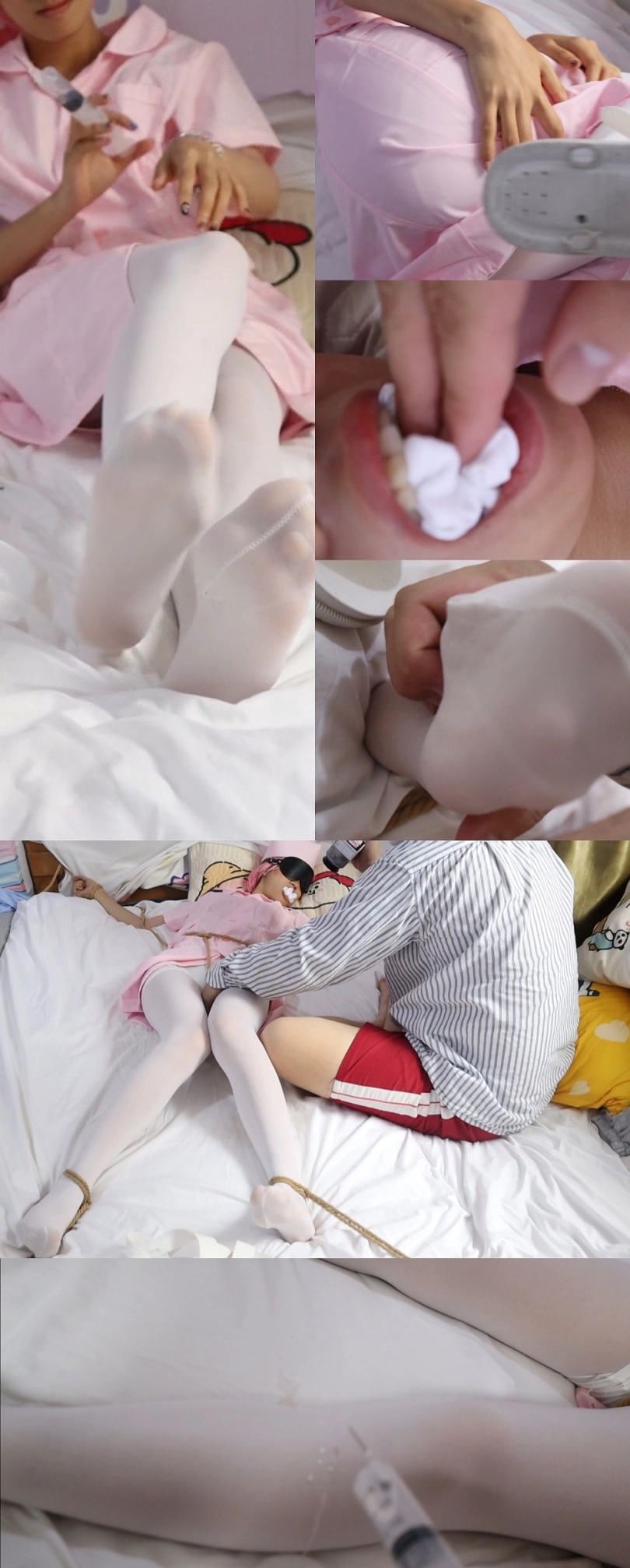 【荷仙少女】粉色护士小姐姐 感冒打针反被绑,柔弱小护士姐姐四肢绑在床上,用袜子强行塞入被推到护士姐姐的嘴巴里,摸遍全身的皮肤tk护士的白丝小脚(用小针头呲白丝腿