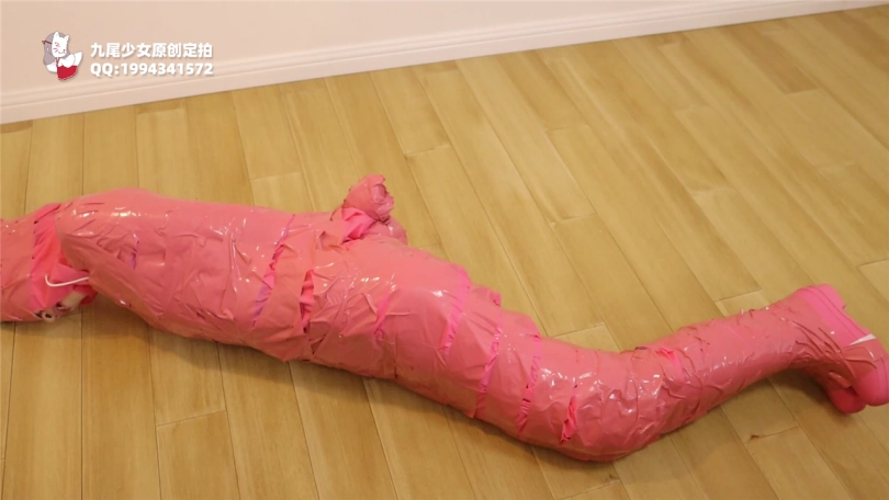 【九尾少女】白丝死库水雨衣胶带木乃伊,死库水龟甲缚捆绑,胶带木乃伊拘束挣扎