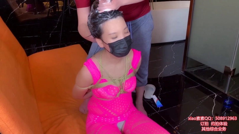 【xiao素素】粉色连体网衣捆绑洗头泡澡浴缸里TK求救挣扎