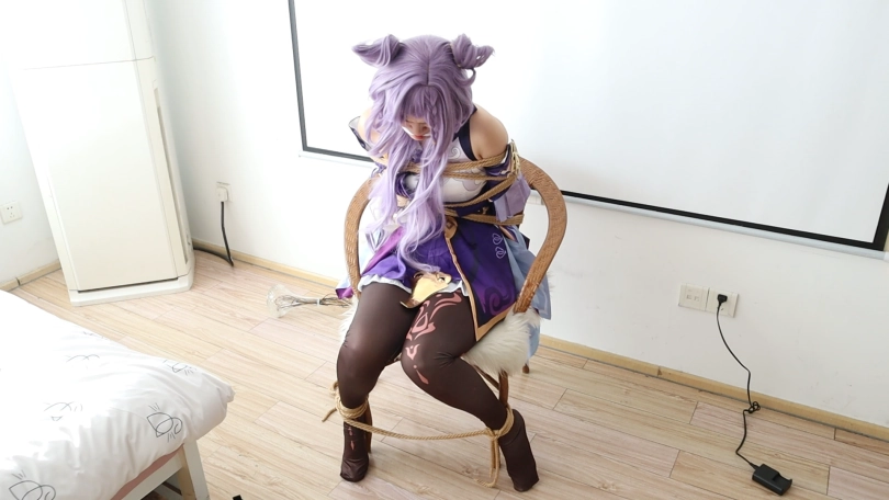 你给我老实点,看你长得这么好看,绑起来才会更好看呀,说着把一条白丝袜勒住了刻晴姐姐的嘴巴
