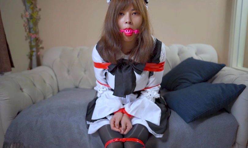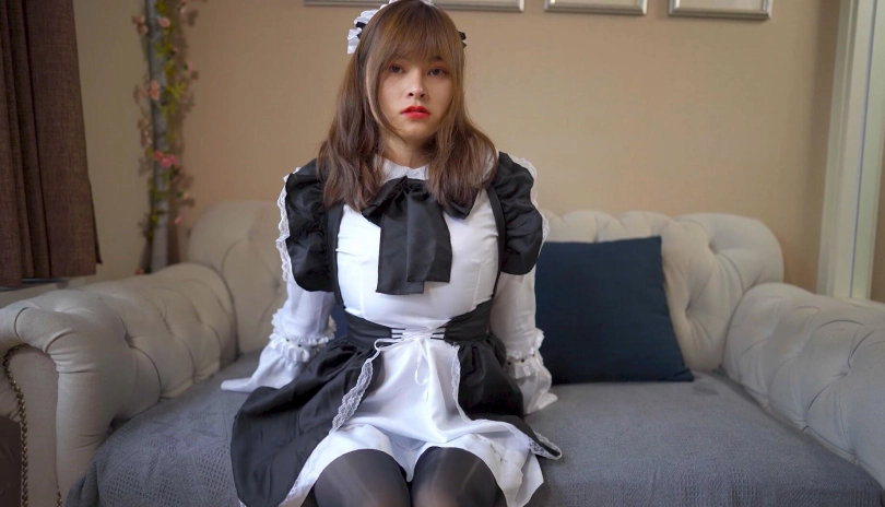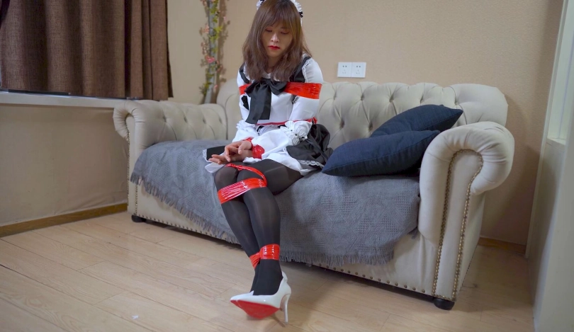 【4K映像】女仆装与黑丝袜,洋娃娃与红胶带【唯美风】纯粹欣赏奈奈精致的五官
