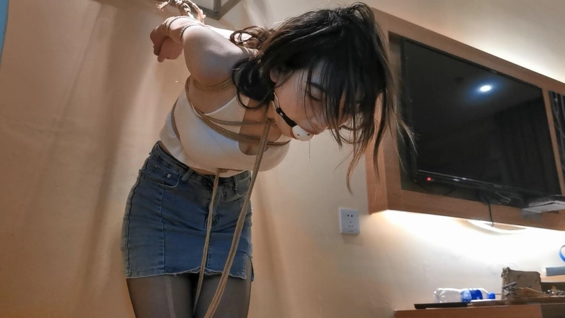 身材及其火辣的尤涵,穿[X_X]带裙胸前的一对大灯已经快呼之欲出了。尤涵不仅身材好柔韧性和耐力都不错,给模特欧式直臂紧缚后手吊起来,再戴上大号口球放置,身前再用绳子牵引强制弯腰,尤涵就这么被束缚的动弹不得。事前在模特身上的某个地方放了一个小彩蛋,绑好之后就把它遥控打开,尤涵被刺激的口水像瀑布一样就流下来了。