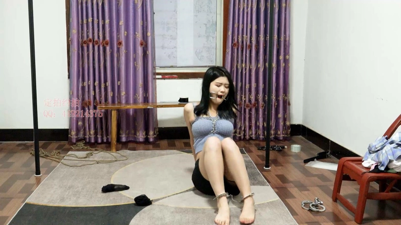 【子衿】菲菲黑丝镣铐网调实录,口枷,单脚吊,打脚底,扎带绑脚大拇指驷马