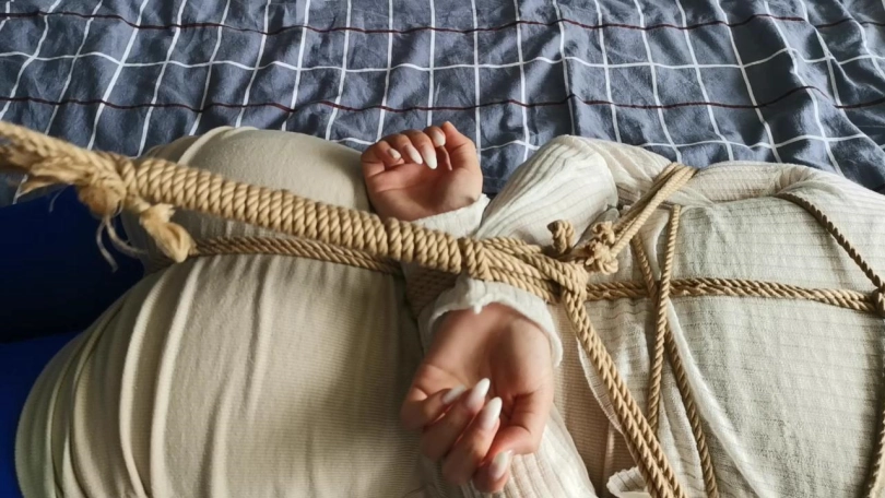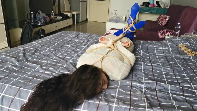 【JS】艾可 性感蓝丝袜 龟甲紧缚 驷马挣扎