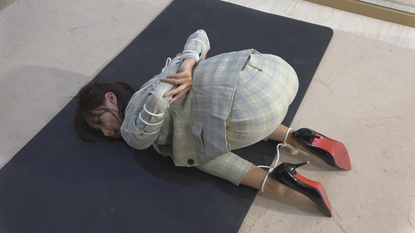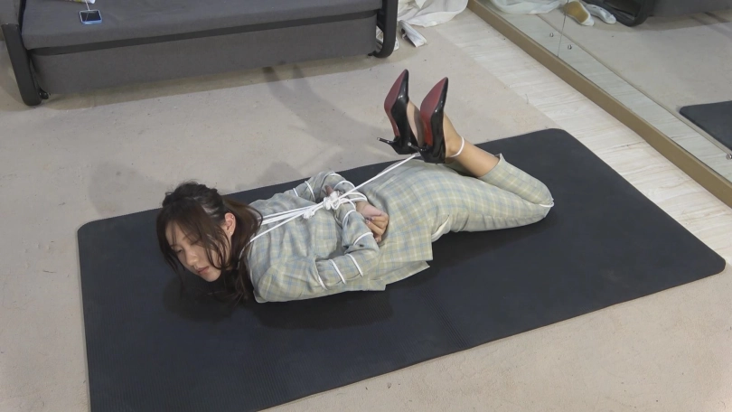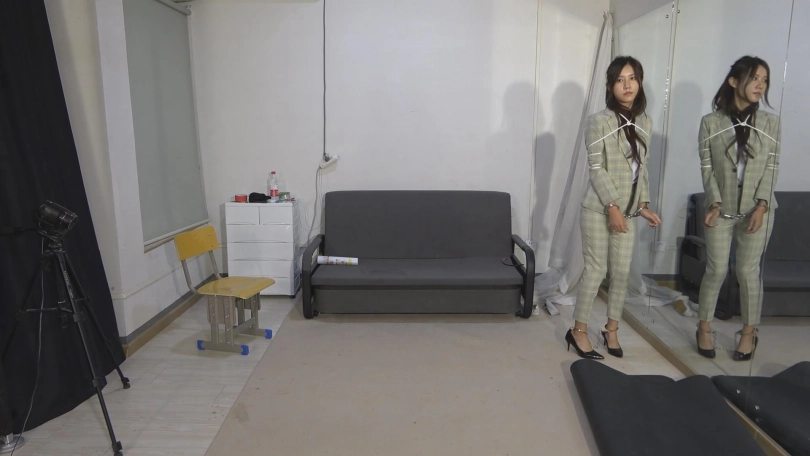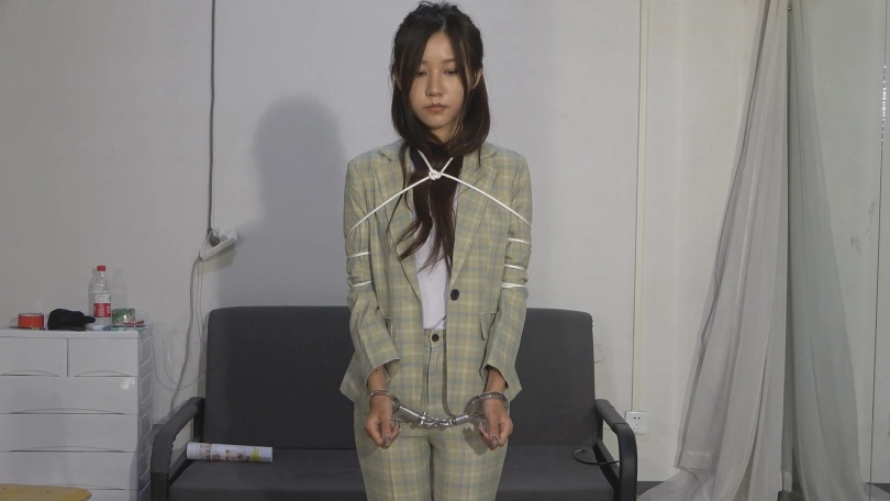 大学生美女然然,穿上西服显得多一分成熟与干练。反扭,押解,手铐,脚铐,扎带,押解绑,五花大绑,驷马挣扎等元素。