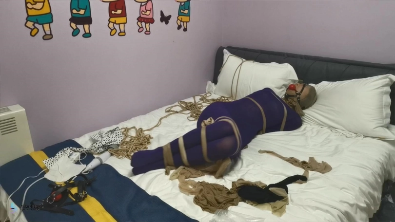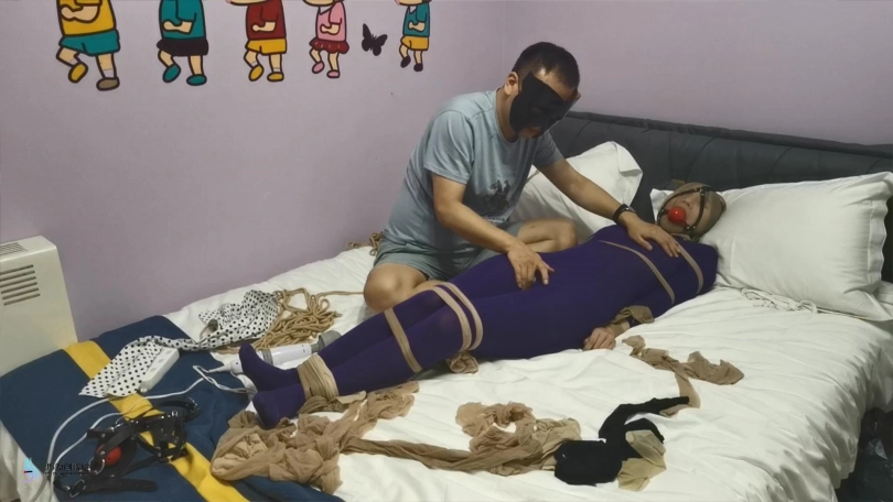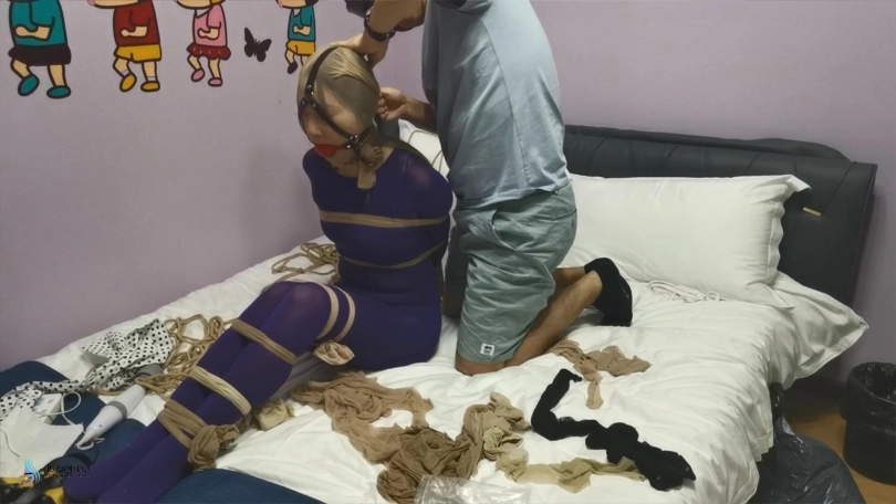 【JS】妙彤 紫色丝袜连体衣丝袜捆绑丝袜套头马具型口塞棒棒强制高C