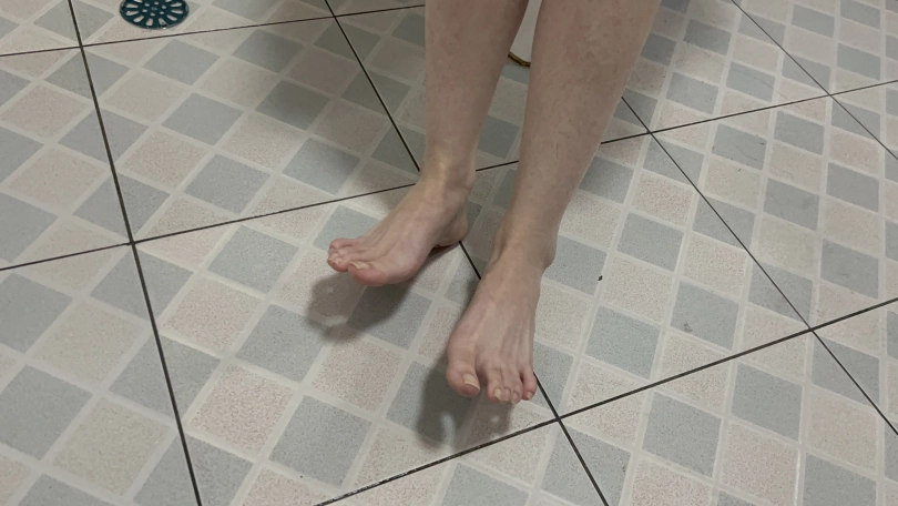 刚开始将可心的脚心涂上润滑油,让可心自己用脚脚玩不用手,玩三到五分钟让可心去浴室在自己将沐浴露涂抹在脚上自己玩并洗干净