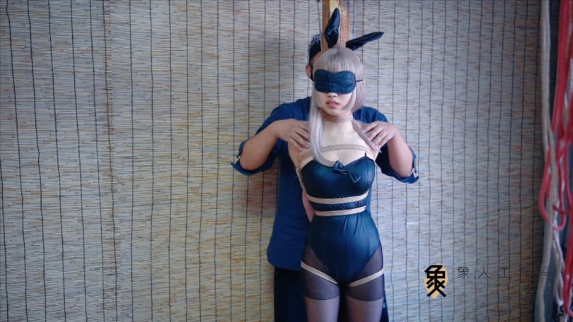 【象人】兔女郎小o!小o-兔女郎+黑丝,柱缚抚摸,y具口塞,折腿缚+前手缚放置。