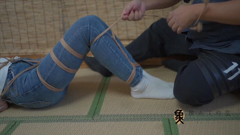 【象人】人妻Miya- 日式并腿紧缚+深入抚摸+5cm超大口球,驷马吊缚,紧身牛仔裤+小白袜。