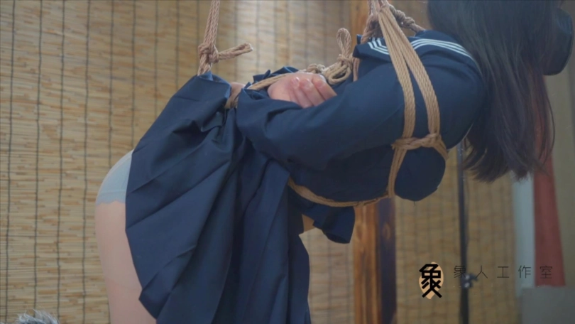 在膝盖,脚踝,股绳处都预留了绳环,从脚踝穿过上下胸绳后背交汇处,