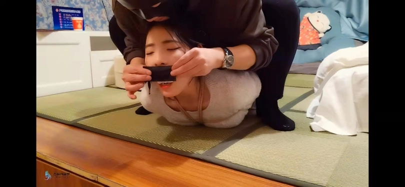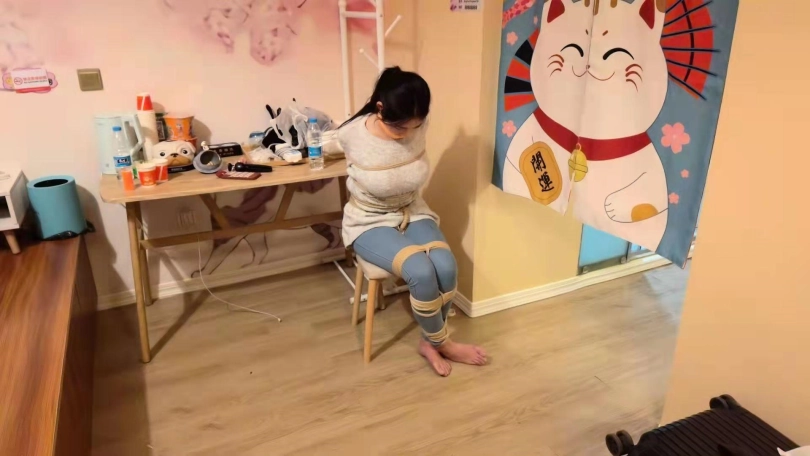 小狼同学换了班主任,但他仍然屡教不改,这天又闯下大祸,气的班主任玖念老师上门教训他。镜头一转,老师来到房间看到小狼正在床上玩手机,于是立马过去揪住他的耳朵,这一举动惹恼了小狼,她立刻把老师放倒然后坐到老师身上,老师剧烈挣扎,大喊放开我,而小狼拍打老师屁股又拿刀逼住她,命令她老实点,接着把她日式捆绑起来,双腿股绳加蛇缚,绑得结结实实的,接着往老师嘴里塞了毛巾,又封了几张厚胶布,捆绑嘟嘴后,他让老师老实点然后离开。可老师怎么会老实呢,一蹦一跳的到门口想要逃跑,最后还是被抓了回来,接着就被绑成驷马倒攒蹄,然后棉袜堵嘴,肉色绷带缠绕再黑色胶带封上,接着就是全身TK了,脱鞋挠脚心,挠腰,脖子,摸胸口,好不刺激,老师也受不了发出呜呜呜声音,玩弄一会,小狼给老师个挑战,让她自己挣扎要可以解开连接手脚的绳子就放了她,接下来就是挣扎环节了。最后老师解开了连接手脚的绳子,可小狼没打算放过她,,又把她欧式直臂缚接双腿捆绑,紧紧绑在椅子上,更过分的是,居然脱下了老师的原味白棉袜,塞到老师嘴里,然后再用粉色绷带缠绕,外面再用黄色胶带封,捆绑堵嘴好后离开,老师挣扎并呜呜呜。