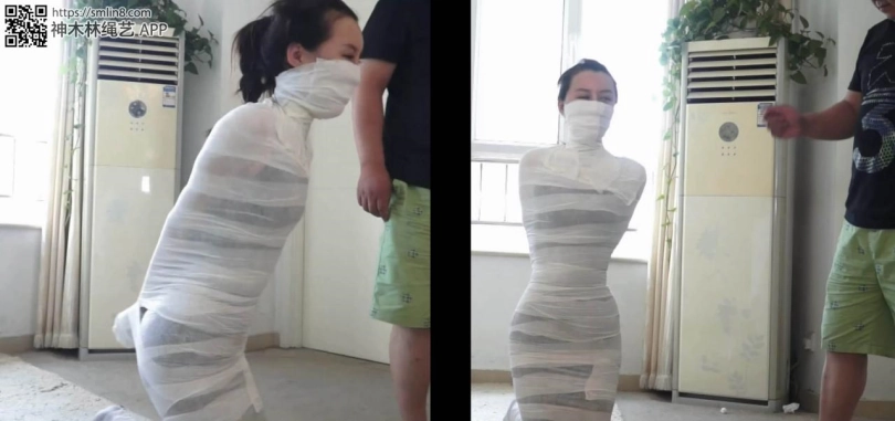 【逍遥】《名模的陷阱02》美女被伪装拘束!救星就在面前却发现不了!美女木乃伊捆绑下强制跳舞!