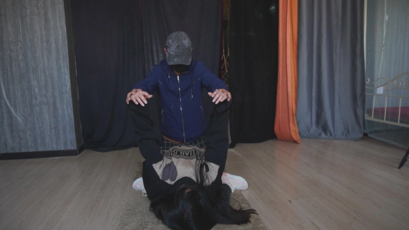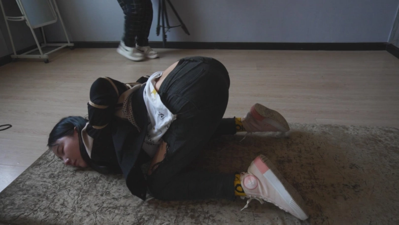 模特颖儿,挺文静的一个姑娘。今天穿了一件牛仔裤,看着很新,可就是破了一个大洞,估计是天热了,这种裤子凉快吧……