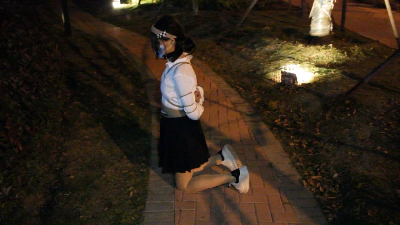 【子衿】菲菲五花户外行走罚跪,带上口枷,忍不住的口水模流