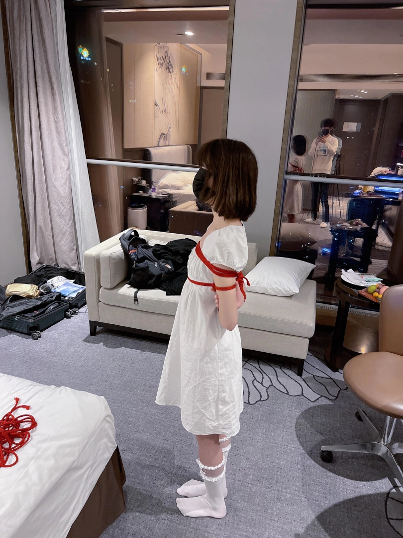 把茶茶用驷马的姿势绑住,命令茶茶趴在地上来一个折腿驷马。