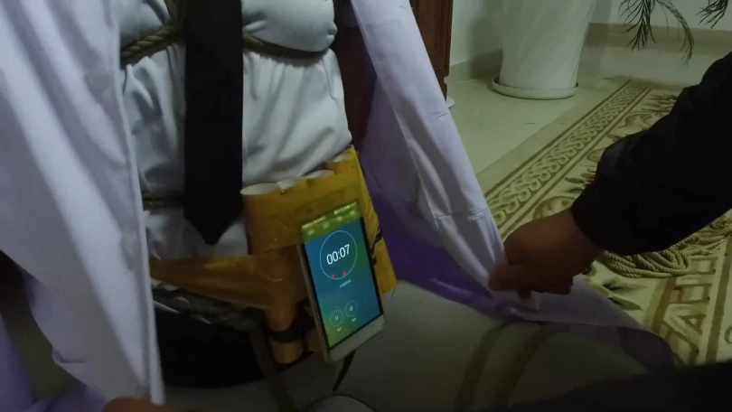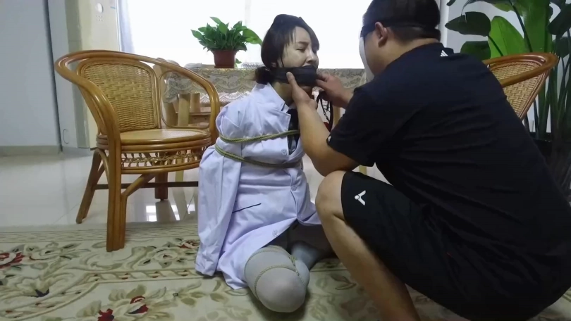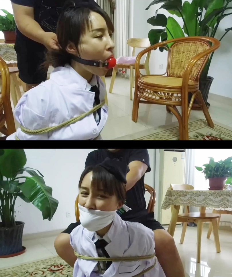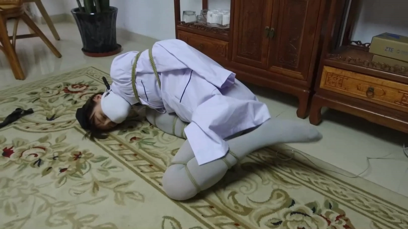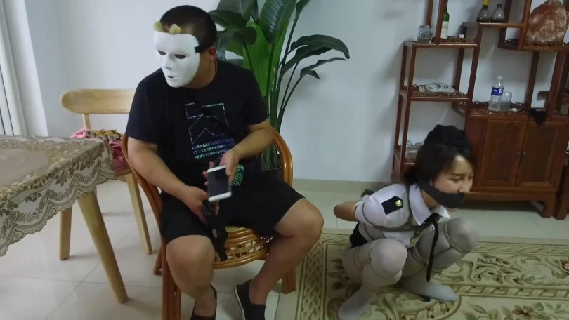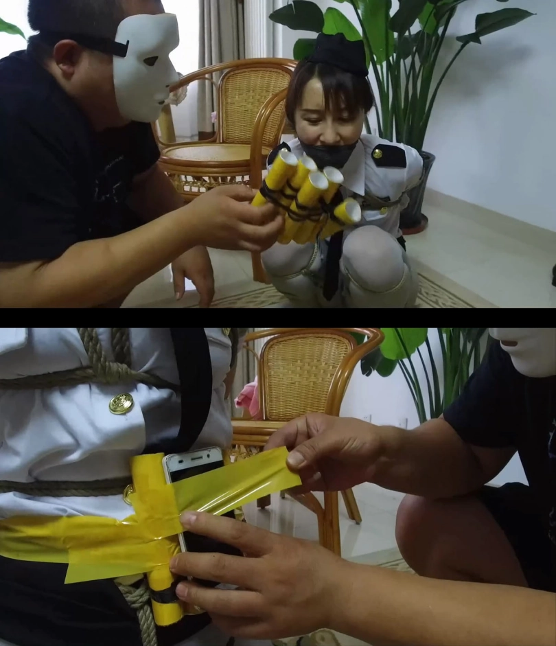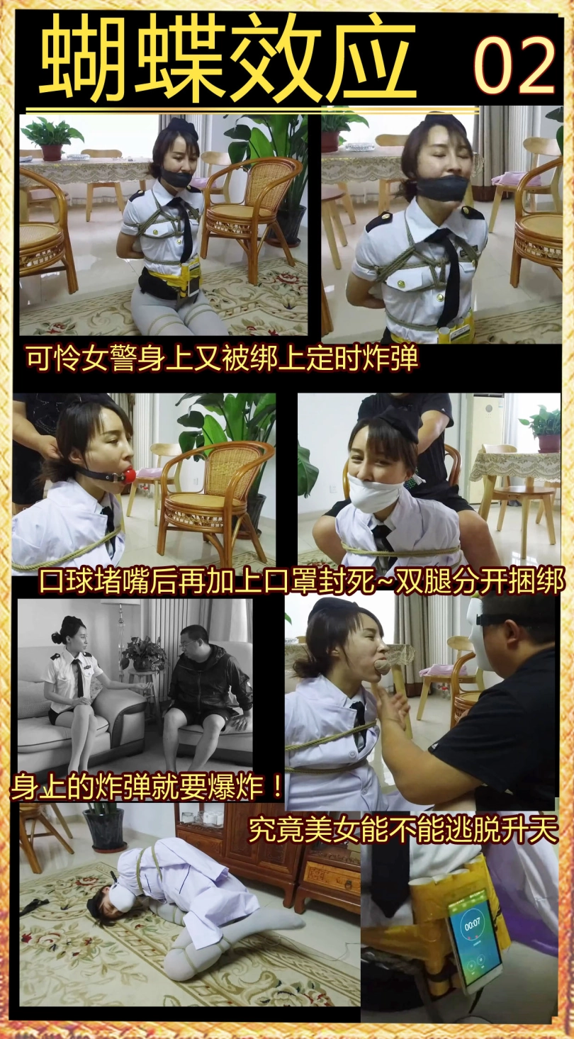 【逍遥】《蝴蝶效应02》美丽警服美女!丝袜美腿折叠分开捆绑,丝袜塞口+口球+口罩,身上捆绑定时炸弹!!