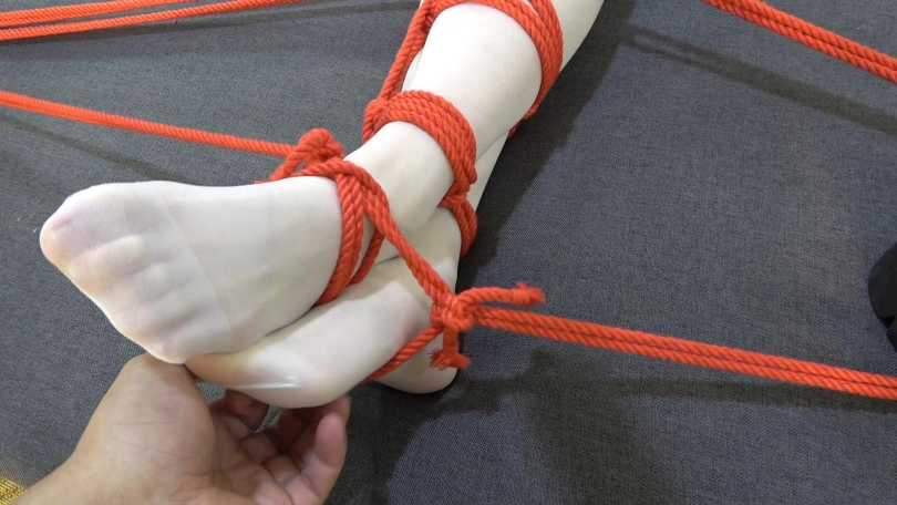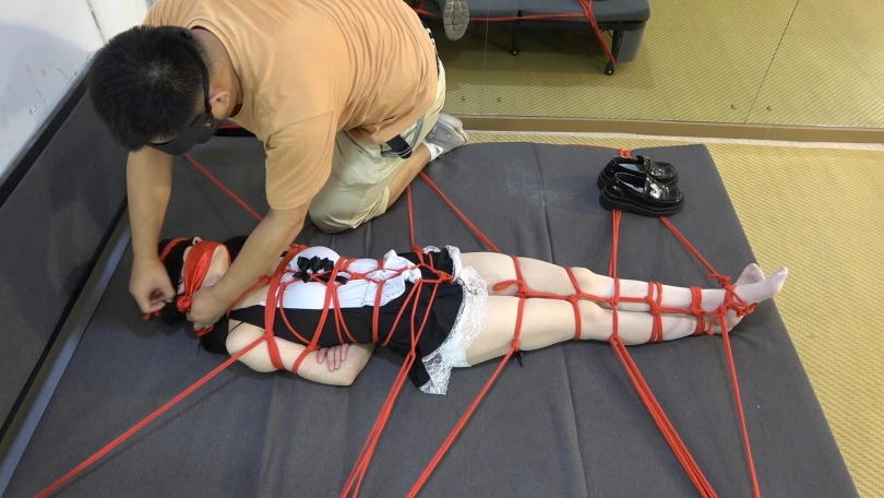 女仆小狐狸全身被捆绑固定在床上,嘴被堵住眼睛被蒙住。交叉的白丝美腿和玉足被红绳衬托得十分唯美。被迷昏的她一个静静地在冰冷的房间里沉睡着........