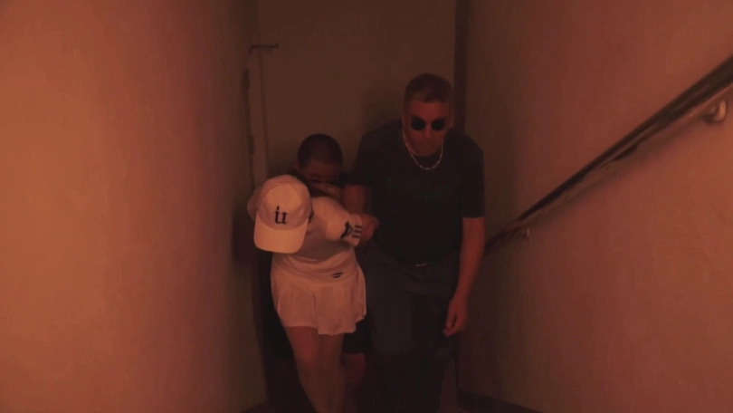 麻三推搡着李雨潼走在黝黑的 楼梯内,边走边说:小妞,为了你 我们还得爬楼梯,电梯也不敢上,一会到了家
