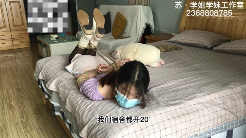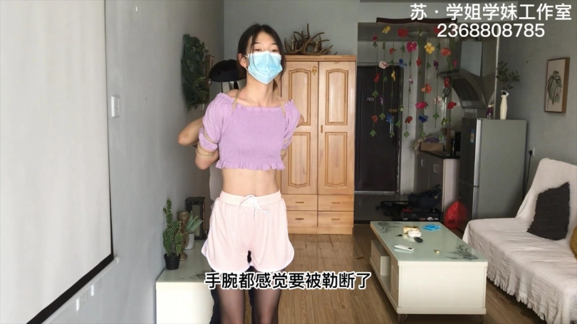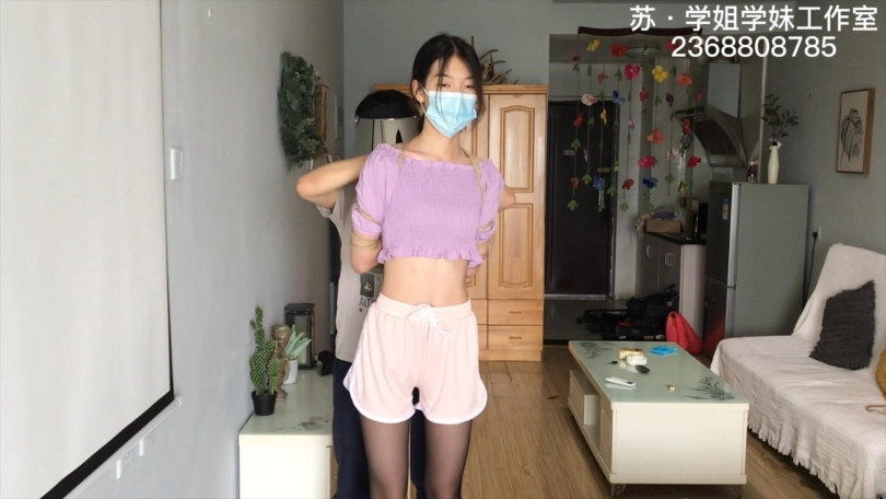 解语穿着黑丝运动短裤短靴露脐装,被来了个超紧五花驷马,疼的解语哇哇叫,最后软软赶来给解语松了绑。