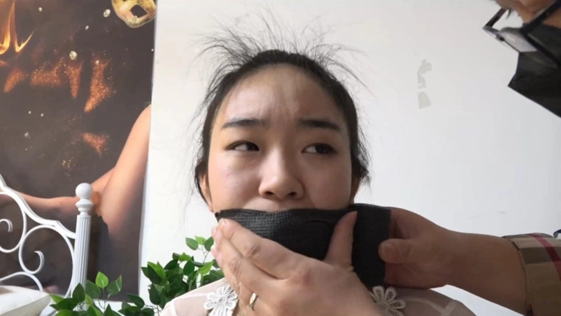 男人堵住女孩的嘴巴,用绷带封住,再用胶带缠绕。女孩几乎一点声都出不了,只剩眼神楚楚可怜。之后男人用胶带加固林丹丹腿部的捆绑,红色和银色的胶带交替一圈又一圈的缠绕林丹丹的美腿,林丹丹的上半身也被两种颜色的胶带缠绕数圈绑得十分严实。男人再把女孩驷马捆绑起来。