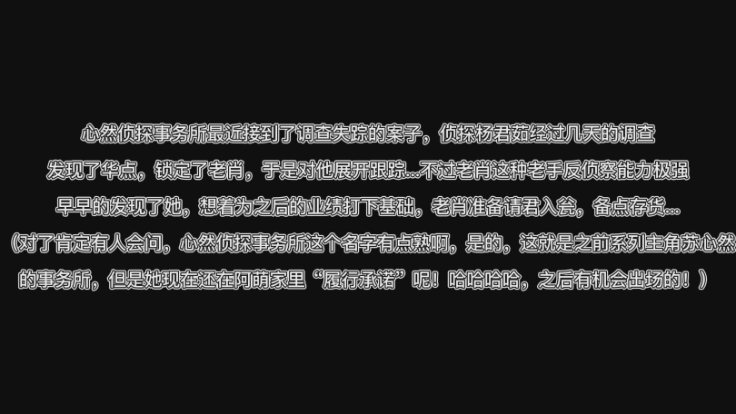 (对了肯定有人会问,心然侦探事务所这个名字有点熟啊,是的,这就是之前系列主角苏心然