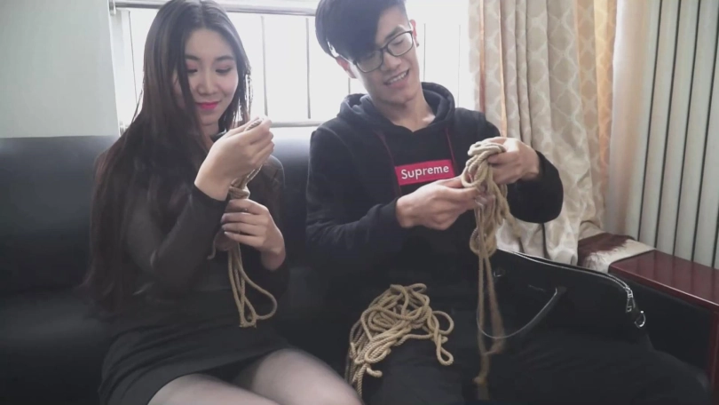 但是挣扎时徒劳的,男子捏的小张的嘴狠狠塞进去,事后还用胶布密密的封住。另外一条丝袜蒙住眼睛。