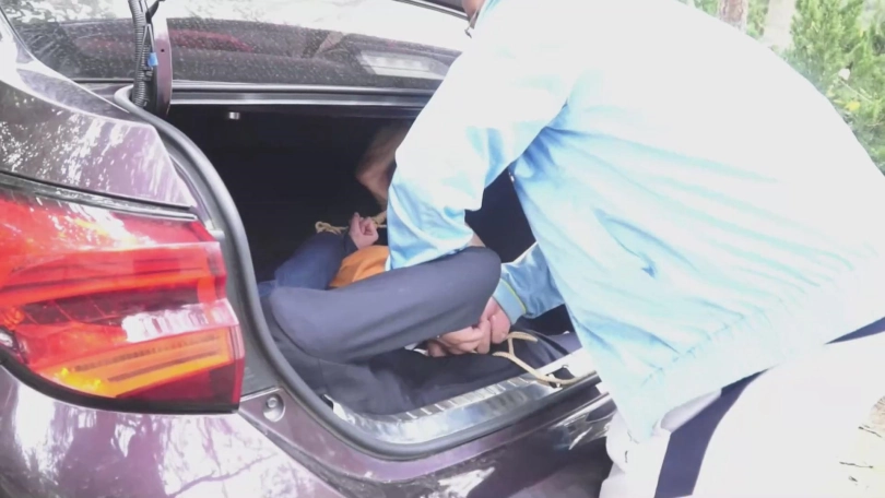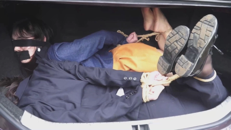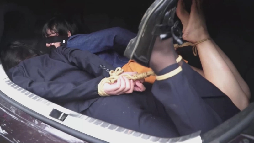 男子将徐丽手脚捆绑后也抱进了后备箱,这下小张可有的作伴了。