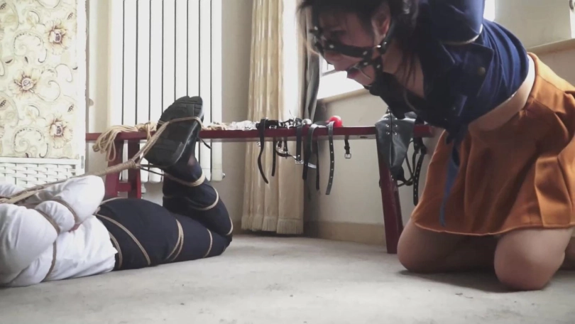 不过徐丽还能发出点声音,小张因为嘴里还有丝袜就只能呜呜呜了。
