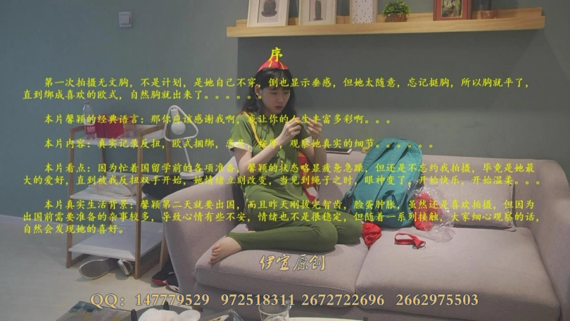 本片看点:因为忙着国留学前的各项准备,馨颖的状态略显疲惫急躁,但还是不忘约我拍摄,毕竟是她最大的爱好,直到被我反扭双手开始,她情绪立刻改变,当见到绳子之时,眼神变了,开始快乐,也开始温柔。。。。。。甚至提出睡觉时候也拍一会。。。