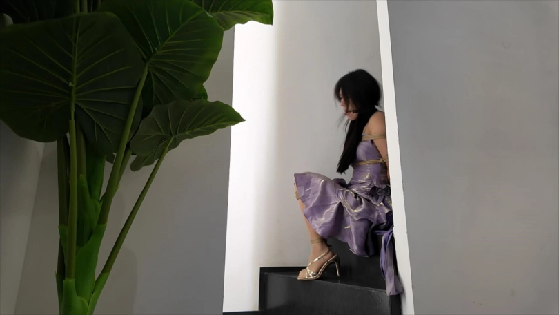 绑架了刚在夜店下班的公主回据点捆绑调教的故事,所以挑了件挺不错的礼服搭配金色凉高跟,很显十一的身材。剧情架构上参考了老哥之前发布过的几个视频,再加上一直想实现的捆绑挣扎下楼梯,以及个人很喜欢的单腿吊,所以这部片里能看到诸如绑架追逐、黑丝套头、下楼梯、单腿吊及上下蛋蛋小玩具调教等经典元素,其中下楼梯这段是我最喜欢的片段,十一的演出真的无可挑剔。。这回也是辛苦老哥帮忙找到了家既有楼梯也有浴缸的民宿了,很不容易,据说那家民宿宣传图看着大实际很狭窄的,特别是楼梯还很陡,十一很敬业还是坚持下楼了。