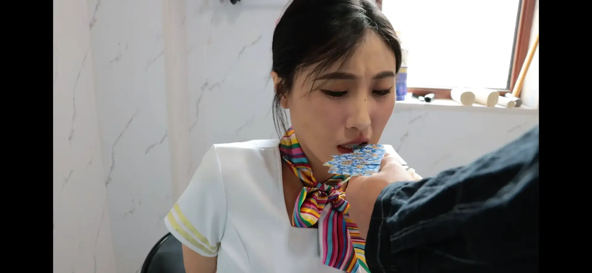 很不巧,恩可抽中了两个:丝袜勒脖子、保鲜膜缠绕头部。她的结局注定了。