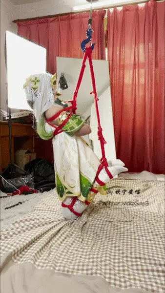 外出的纳西妲又一次被抓获了,这回迎接她的依旧是密密麻麻的绳子……他们将她的大小腿捆在了一起,双手在身后被吊到了几乎极限高度,让她痛苦不堪,这还远远不够,他们又将她的双腿和上半身连接到了一起,然后将整个身子吊了起来,让她只能够膝盖踮地……在蒙上眼睛带上开口器和震动小玩具后他们便离开了,只剩下无助的小草神不停地扭动着身体……