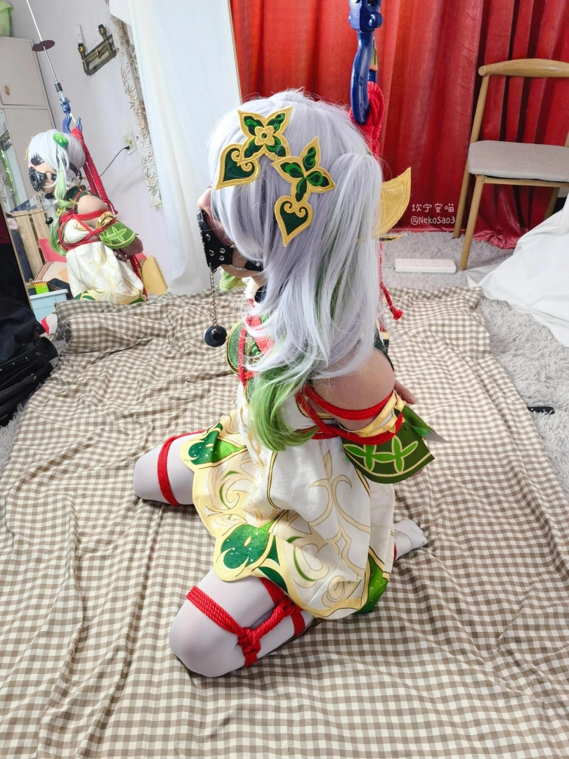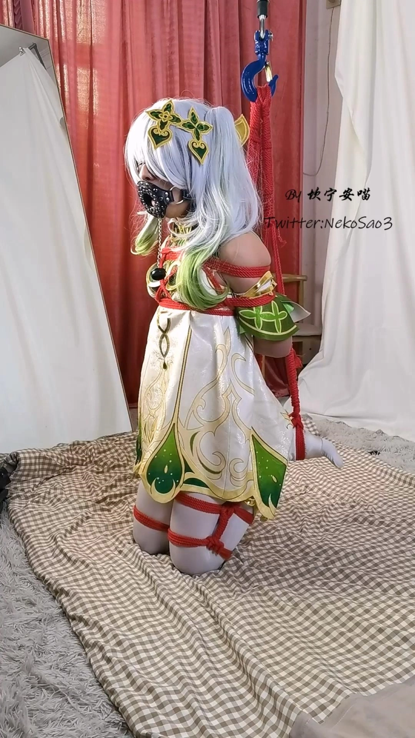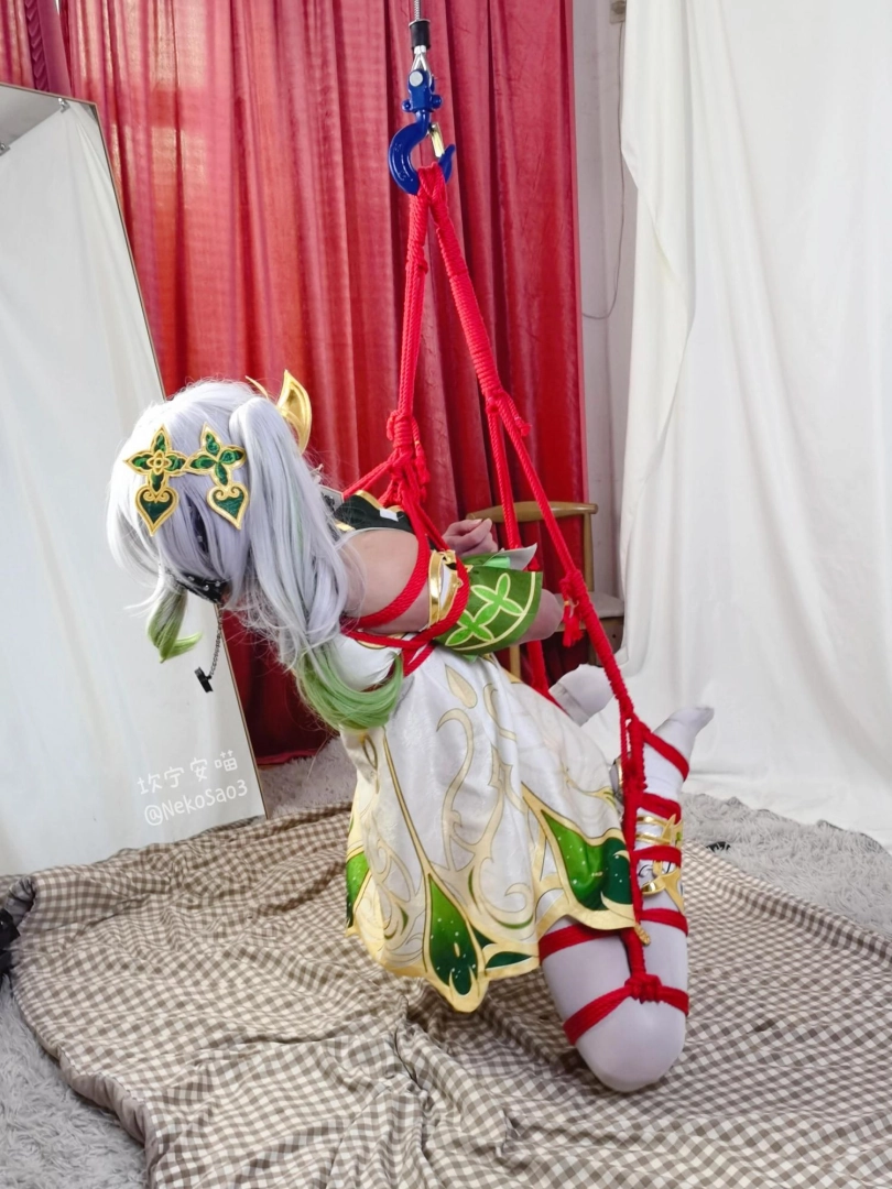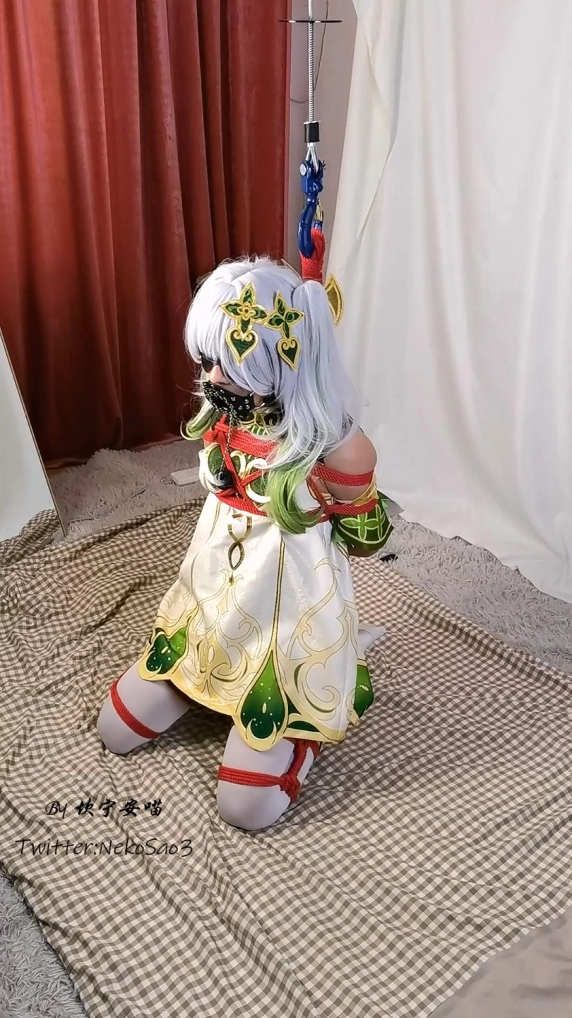 【坎喵】原神cos-草神纳西妲白丝折腿跪吊-膝盖踮地痛苦不堪