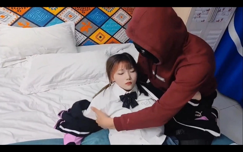 少女被弄晕后脱衣摆弄,涉及元素有睁眼昏迷、摆弄、换装、JK、丝袜等。