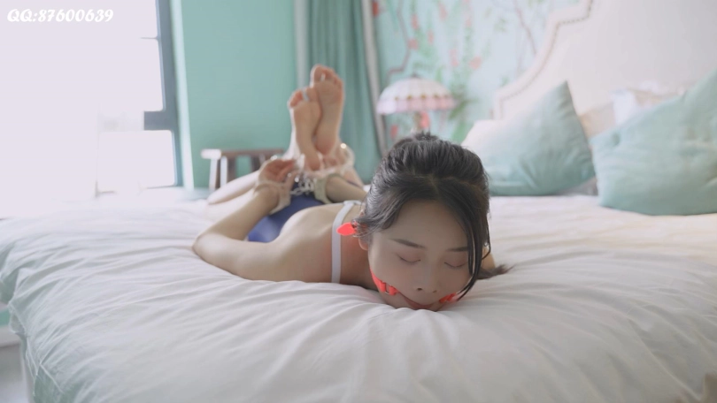 妹纸第一次带镣铐,之前从来没见过,试了试后感觉挺沉的。修长的大腿和纤细的手腕和镣铐很搭配。驷马拷后,[X_X]的挣扎也很真实。