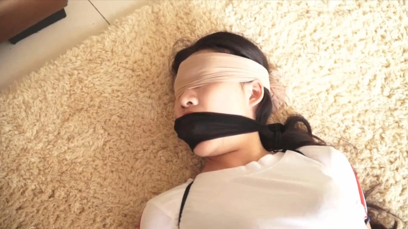 依然饰演的女白领已经被绑架了20多天,变态的女人每天对她进行各种捆绑,有个问题是劫匪已经三天三夜没有给食物自己吃了,只是每天喂一点维生素水自己喝,这天,那个变态的女人准备给自己出去买吃的,自己在家通过不断的挣扎以后终于解开了捆绑身上的所有丝袜,拖着无比虚弱的身体准备逃跑却发现门被反锁,这时听到房间里有手机铃声的响声,依然认为自己可能找到救命稻草了,没想到接了电话却是那个变态的女人打过来的,原来屋内被装了微信摄像头时刻监控着依然,她挂了电话准备拨打110报警,但是没想到手机被劫匪不知道用什么方法设置成只能接不能打的状态,这下她彻底绝望了,恐惧、绝望、疲惫的她默默的缩在墙角等着那个变态女人回来对自己的惩罚;最后活活被那个女人用丝袜全包捆绑在床上,那女人脱下自己身上的两层黑色连裤袜,一条套在依然头上,一条从外面将她的鼻子紧紧蒙住,然后躺在她身边看着她慢慢窒息而死。