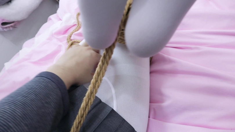 看我怎么收拾你 超青春清纯的脸蛋露脸因为绳子的捆绑变得扭曲的面目已经诠释一切了 穿着小皮鞋的白丝脚脚高高被绳索高高吊在欧式床上,玩过之后又被驷马绑好继续玩弄敏感点,
