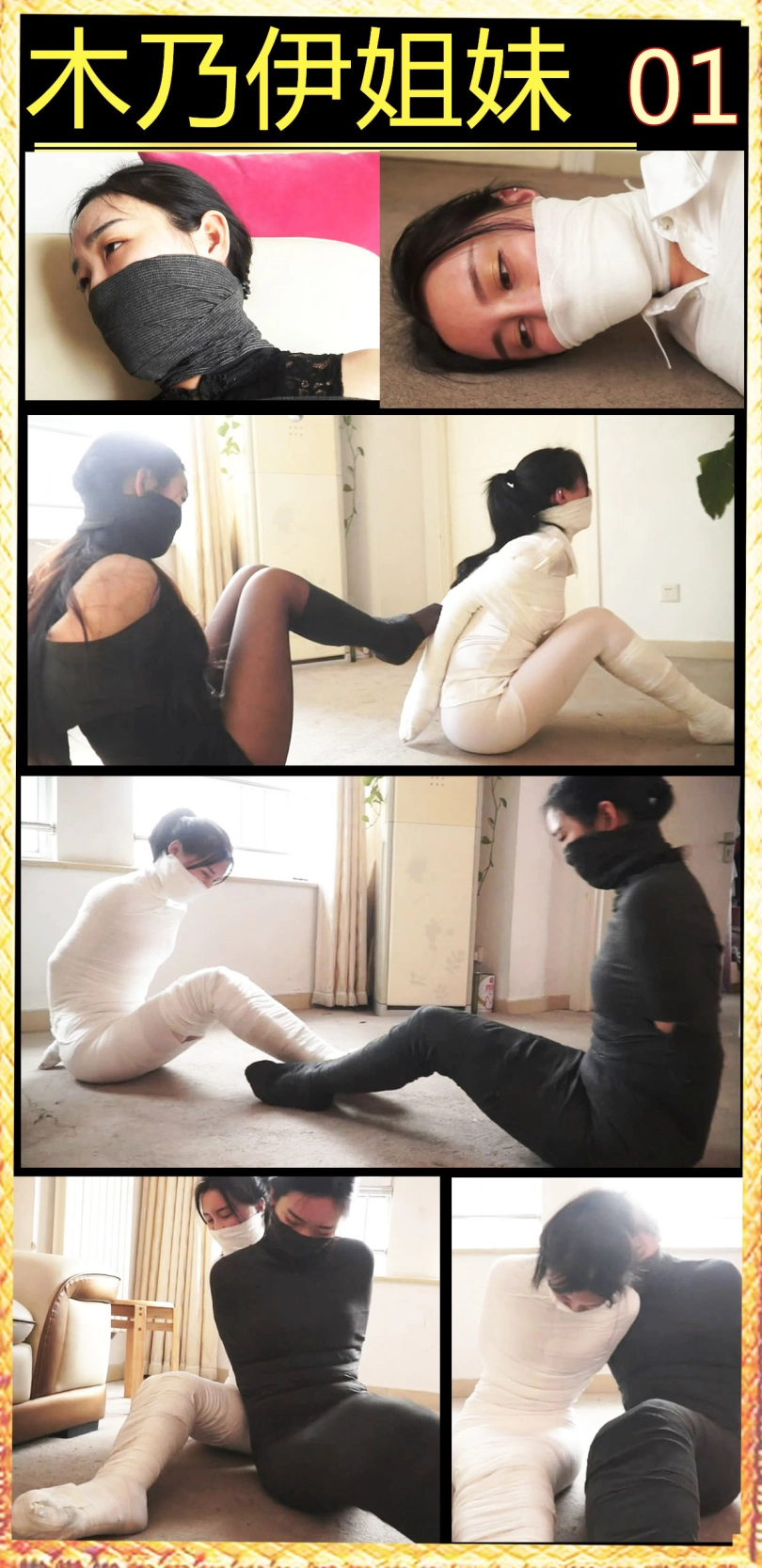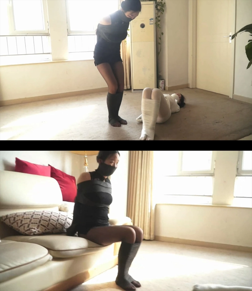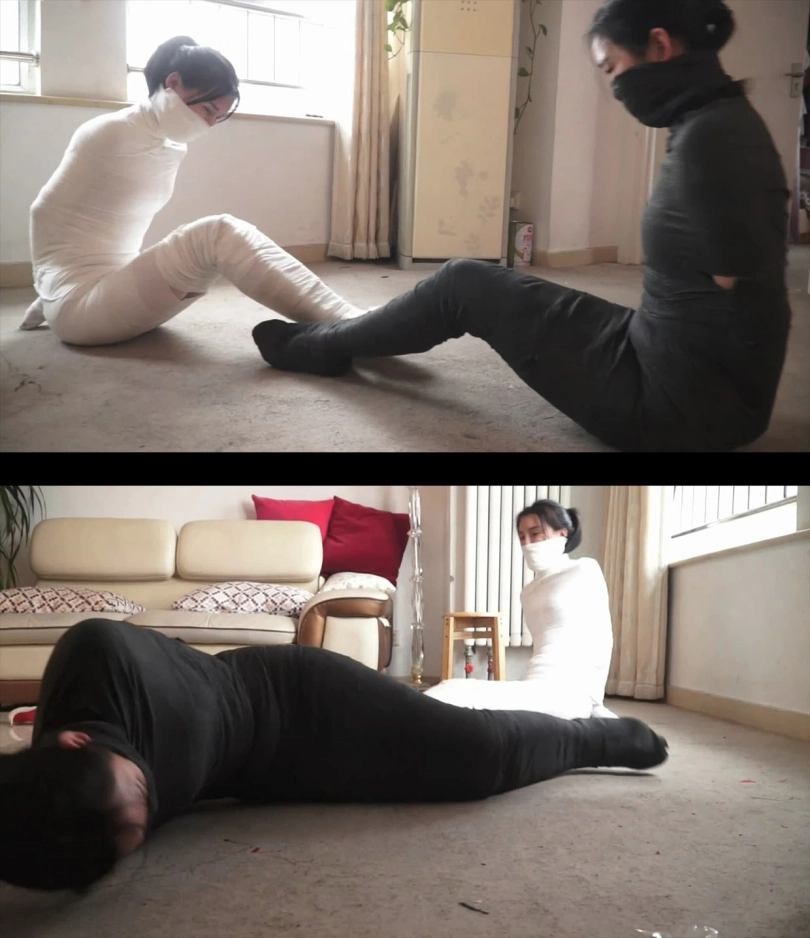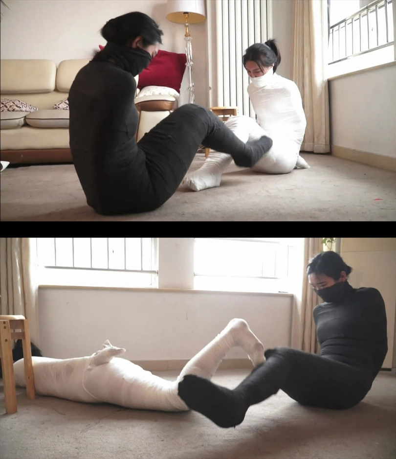 【逍遥】超稀有!《木乃伊姐妹》美女双人捆绑!被迷晕绷带捆绑!奋力挣扎无用 被包裹成黑白木乃伊!