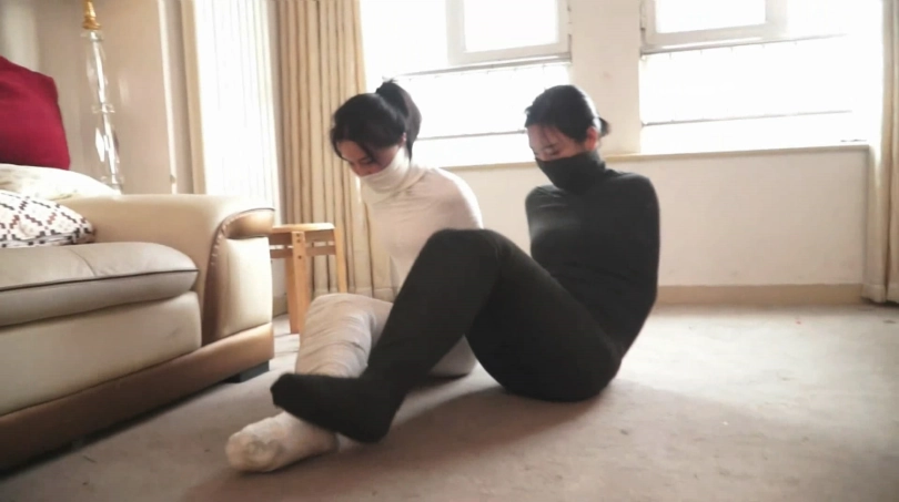 她们艰难的想用唯一能动的脚趾解缚,但很明显,面对如此极端的拘束,这根本一点效果都没有。