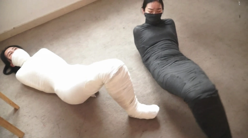 她们痛苦的呻吟扎,玩命的蠕动着想挣脱这几乎绝望的拘束,她们最后能逃出生天吗? 稀有的国内双人木乃伊!挣扎超卖力,模特脸都通红了~